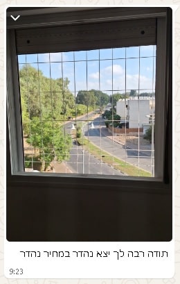 רוצה להודות לך על השרות המהיר והמקצועי. המתקין הגיע ותיקתק עבודה, והסורגים נראים חזקים ויפים! עשית עוד אמא רגועה בישראל!